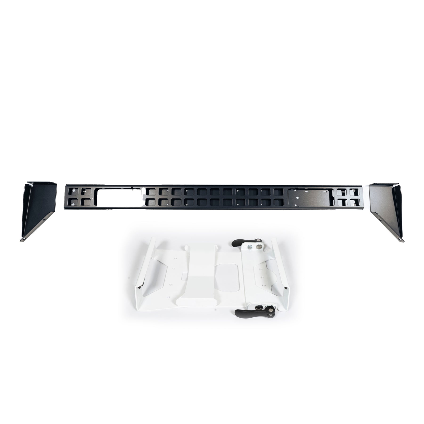 Laser Cut Aluminum with Black Hardware, Satin Black Powder Coat Crossbar - Satin Black/White Powder Coat Starlink Mini mount